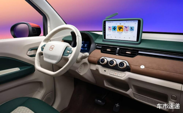2026款QQ冰淇淋的内饰布局比较简单,扁平的空调出风口,舒适性不错的座椅,平底式多功能方向盘以及丰富的储物槽等,既突出实用性也注重时尚感。配置方面也没有花里胡哨的噱头,标配上坡辅助、倒车影像、后驻车雷达等。